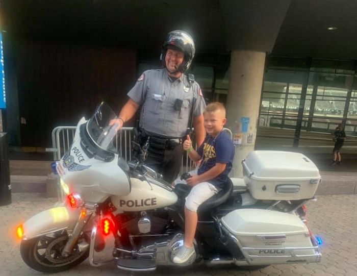 Yesterday, four years after a SSN story (see above), Brody while at the University of Cincinnati-Murray State game Brody showed his respect with a police man outside the stadium.
