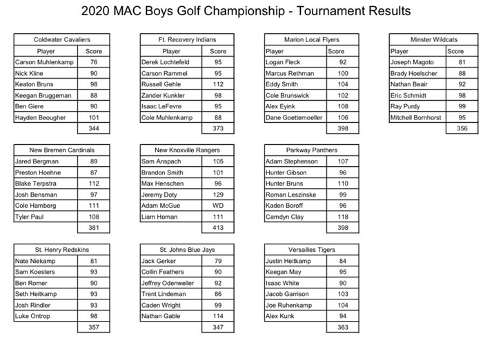 Minster’s Joseph Magoto was named MAC PLayer of the Year totaling a 153.5 points based on regular season and tournament results. Just one point back was the Cavs Carson Muhlenkamp with 152.5 points, followed the Blue Jays Jack Gerker 152 points.
