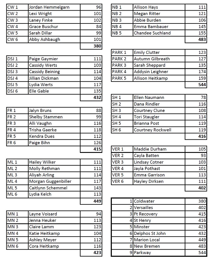 The Cavs with winning the tournament clinched the MAC title after going 8-0 in dual matches during the regular season. Coldwater was two points ahead of Versailles who was 2nd in yesterday’s tournament and and going 7-1 during regular season matches.
