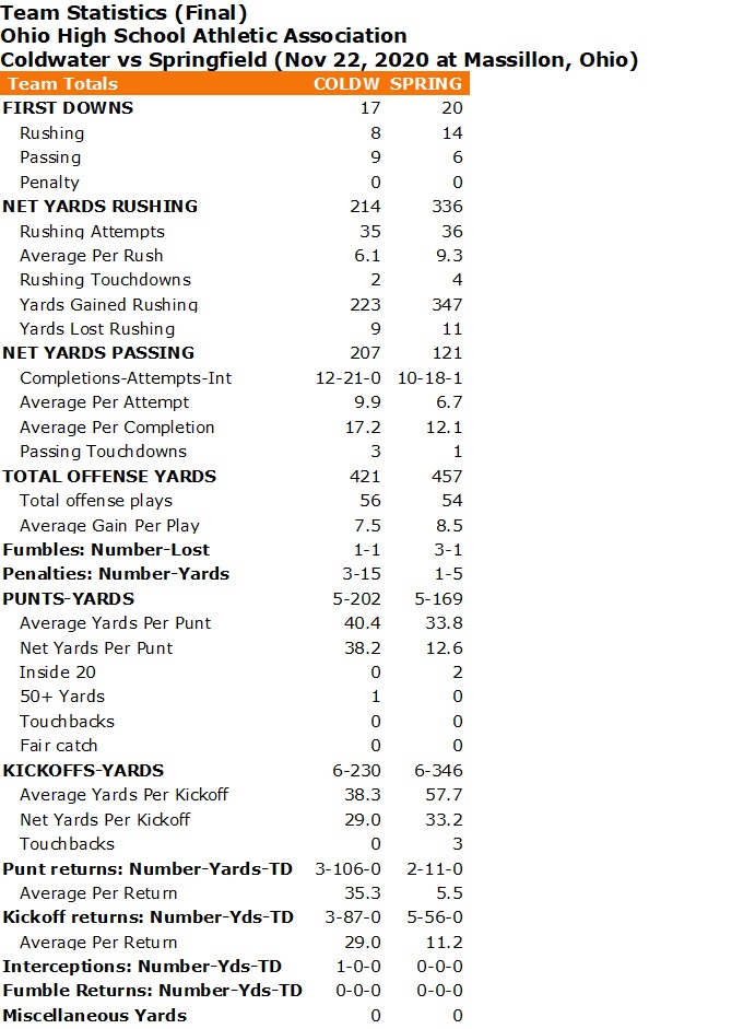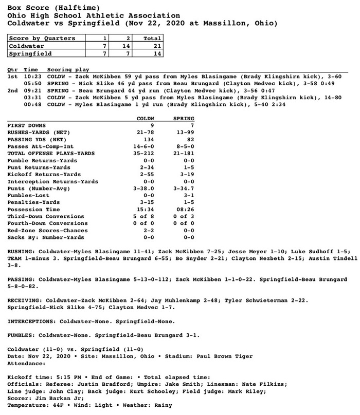 Coldwater vs Springfield (Nov 22, 2020 at Massillon, Ohio)