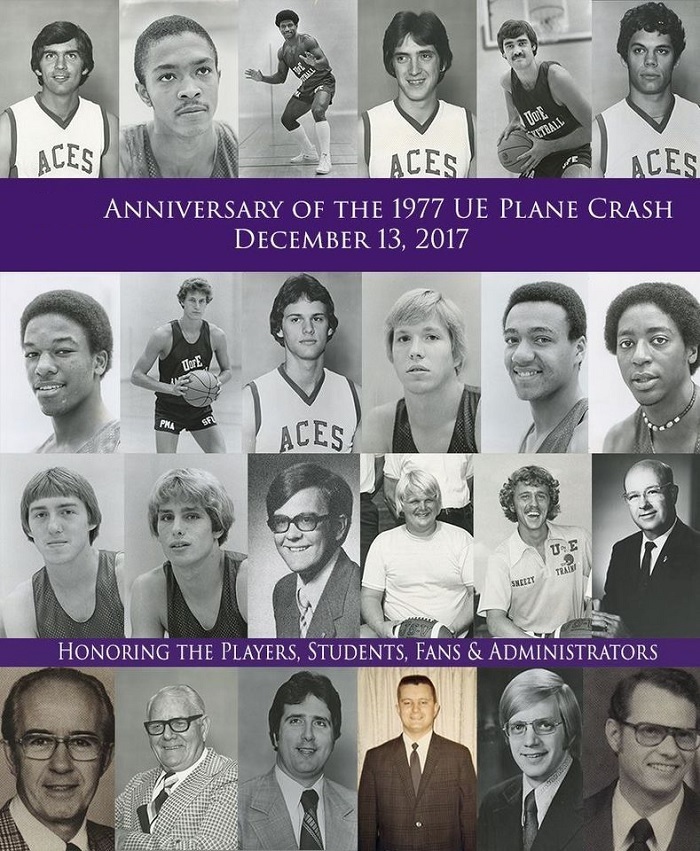 (12-13-20) The University of Evansville Purple Aces entered the 1977 season as a powerhouse in the NCAA’s College Division. Tragedy struck the team, the University, and the Evansville community when the plane carrying the Purple Aces crashed on December 13th, 1977 at 7:22 p.m. in the Melody Hills subdivision. The plane had only been in flight for less than two minutes when it crashed. The crash not only left debris, but also a large hole in the hearts of those in the Evansville community, and in the loved ones of the victims. They are gone, but never forgotten.