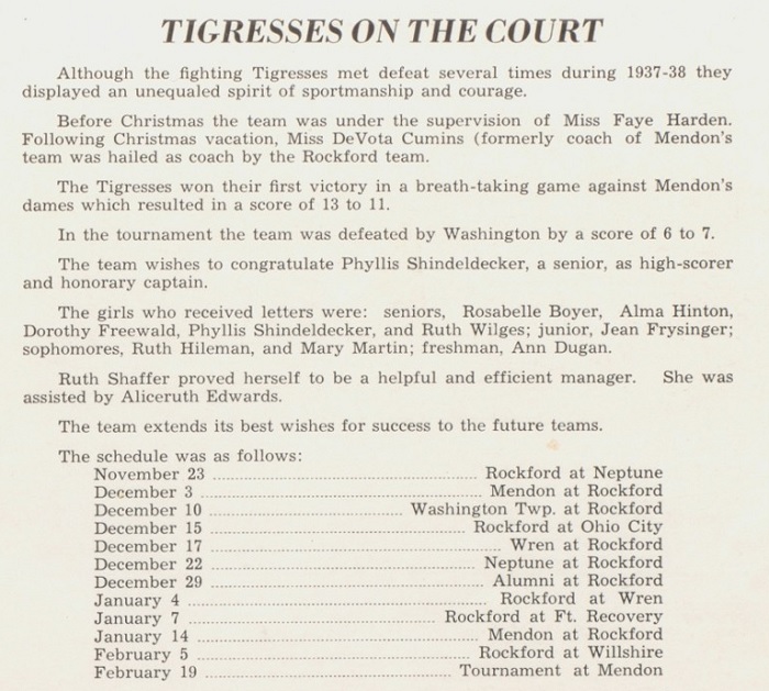 The 1938 Rockford girls basketball team was most likely the last girls basketball team at the school. Whyis that?