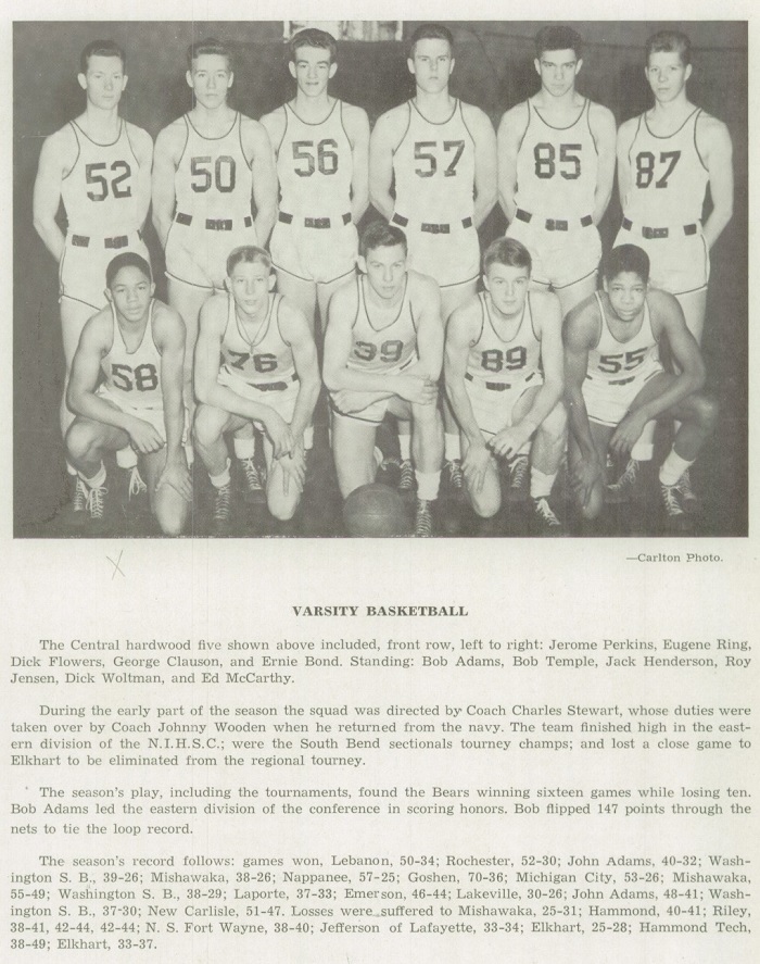 The 1945-46 South Bend Central team was the last team Wooden would coach at the school, he had returned, after the start of the season from serving in the Navy in WWII.
