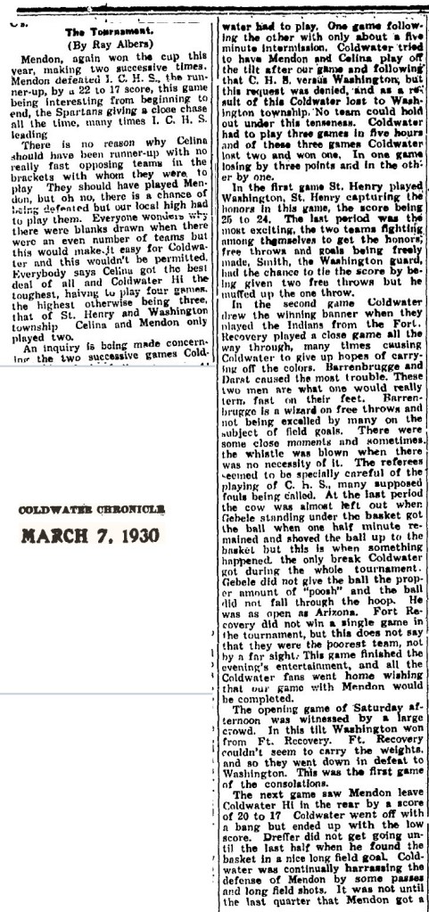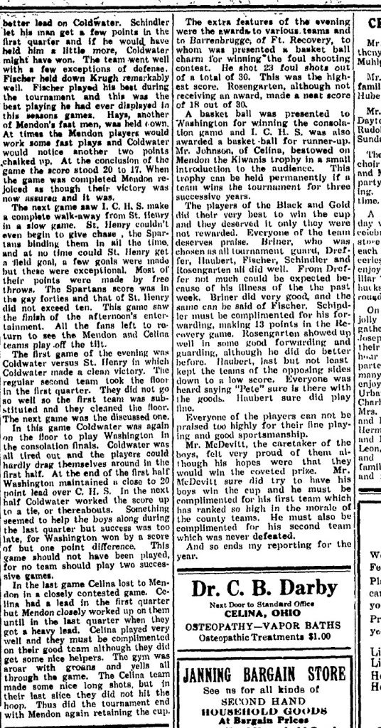 1-9-21 – Coldwater 49 Celina 29 – Ethan Post led Coldwater with nine points. Myles Blasingame and Jesse Meyer both scored eight