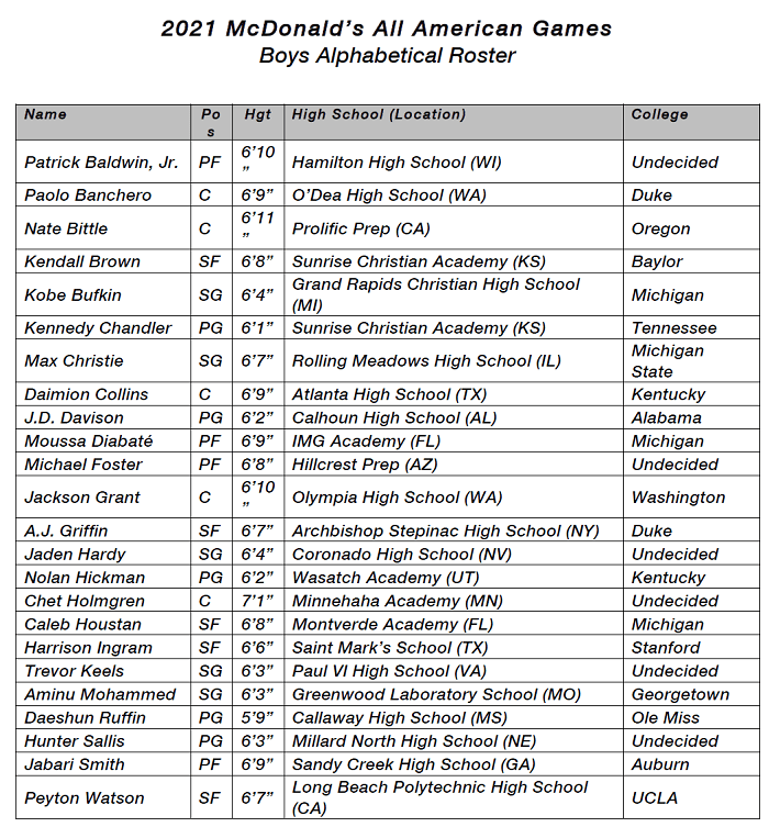 (2-23-21) The McDonald’s All-American Teams were announced today.