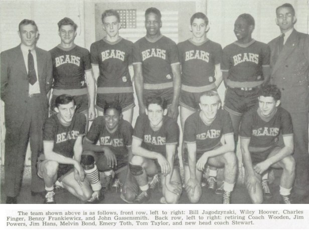 2-yr starting forward for Coach Wooden at Central in 1942 and ’43 … reached semi-state finals as junior … captain and leading scorer for state’s #1 team as a senior but upset by Elkhart in regional … following military service rejoined Wooden at Indiana State … played on NAIA national runners-up in 1947 and champs in 1950 … an asst coach for S.B. Central’s state title teams in ’53 and ’57, assumed head role in ’58 … coached Bears to state finals in ’63 with all-American guard Mike Warren … 174-94 in 11 years at Central. He coached at Elkhart Memorial from 1973-76 had a 53-38 record, including a Elkhart Sectional, Elkhart Regional champions in 1974. Before heading to Elkhart he was the head coach at Rochester.