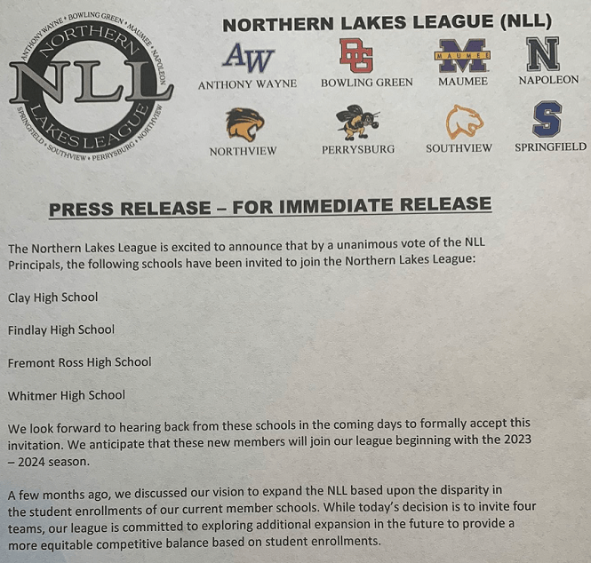 - Northern Lakes Conference sent out a release hoping to double in size