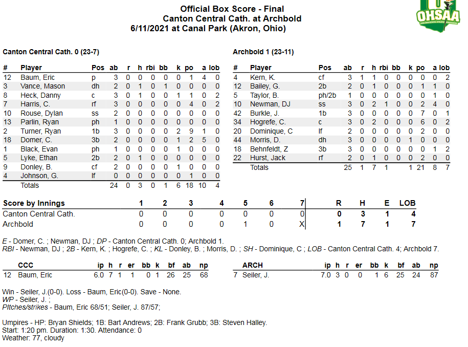 RELATED: Canton Central Catholic And Archbold To Meet In D III Baseball State Semifinal Game