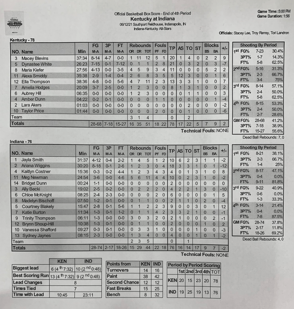 GAME 1 : Indiana Girls All Stars Knock Off Kentucky Thanks To Big Third Quarter