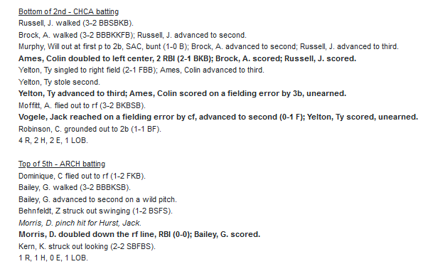 CHCA scored all of their four runs in the 2nd inning thanks to a 2 RBI double by Colin Ames (2B). Ames and Ty Yelton both had 2 hits on the day.
