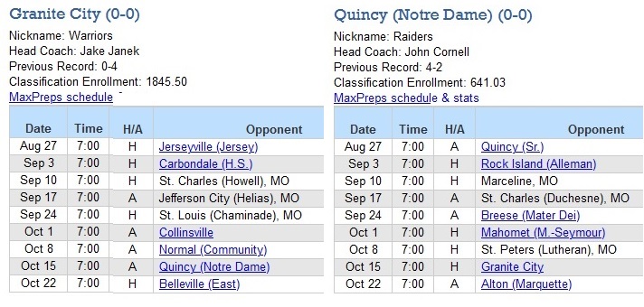 Two schools, Granite City and Quincy Notre Dame, have three out-of-state opponent games slated…all with Missouri schools.