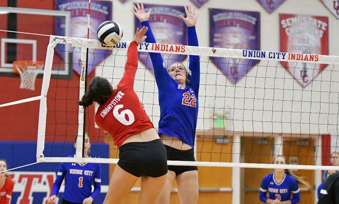 UNION CITY, Ind. – (9-9-21) The Union City varsity volleyball team got their third conference victory Tuesday night after taking down the visiting Lady Panthers from Knightstown by a 3-1 margin.
