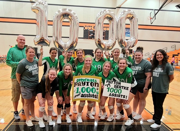 (9-17-21) Celina Bulldog Junior Setter #17 Payton Bertke picked up her 1,000th Career Assist last night in a WBL win over Elida.