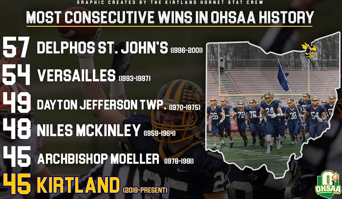 With the win the Hornets are tied for the 5th longest streak in Ohio tied with Cincinnati Moeller (1978-81).