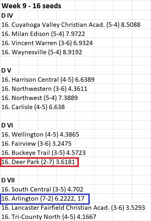 Two schools stand out as 16 seeds… in D IV Deer Park with a 2-7 record would make the final cut, while Arlington with a 7-2 record, the most wins in this group to make it.