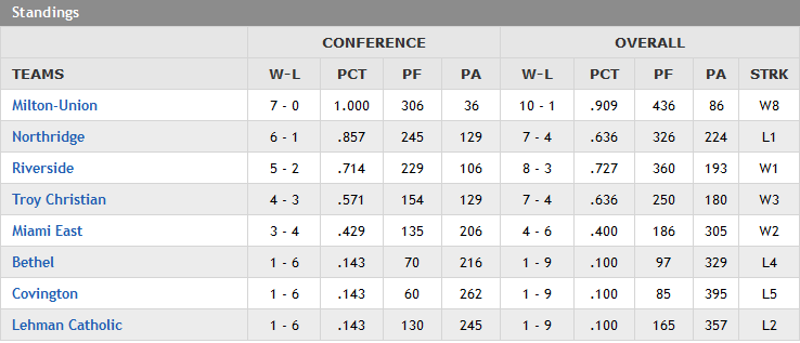 (11-4-21) The Three Rivers Conference named their first ever all-conference football team. League champion Milton-Union, who went 7-0 in conference play, placed 10 players on the 1st team offense and defense.