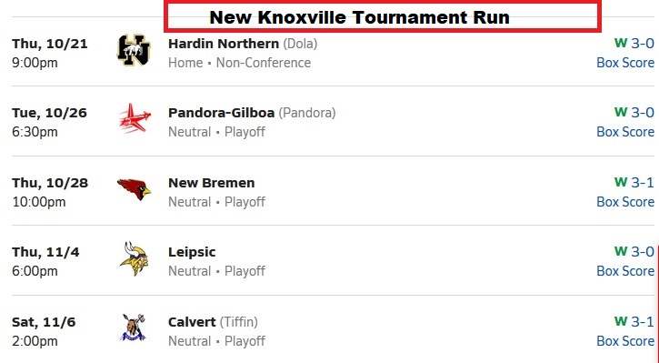 New Knoxville is a member of the state power Midwest Athletic Conference, known for winning numerous state tiles.How good is the MAC? Playing in the other D IV match is St. Henry, who will be making their 15th Final Four appearance (2015 (2nd), 2011 (1st), 2004 (1st), 2003(2nd), 1999, 1998, 1996 (2nd), 1995 (1st), 1994 (1st), 1990 (1st), 1988 (2nd), 1987 (1st), 1986,1985 (1st)). By the way New Bremen, who won the MAC title this year…lost to New Knoxville in the Districts.