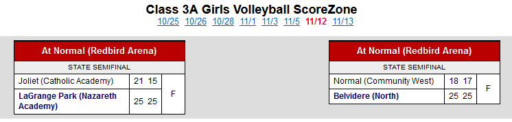 The Blue Thunder won in 2 sets25-18, 25-17, while Nazareth beat Joliet Catholic 25-21, 25-15.