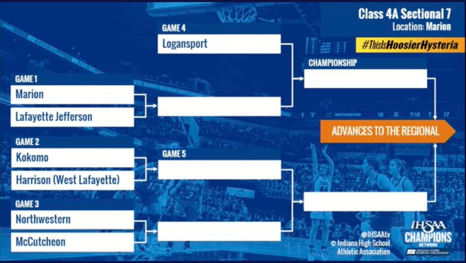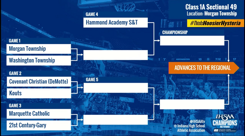 (1-23-22) Today the Indiana High School Athletic Association (IHSAA) drew brackets for the 2022 Girls Basketball Sectionals in four classes. Indiana does not seed teams in any bracket, games are selected in a blind draw.
