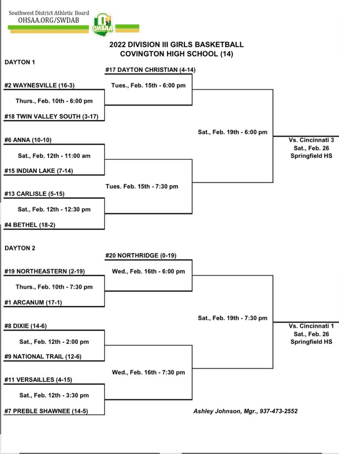 girls basketball, ohio 2022 OHSAA Girls Basketball Tournament Brackets Date: January 30, 2022Author: statelinesportsnetwork 0 Comments (1-30-22) The OHSAA 2022 Girls Basketball Tournament draw was held today. D IV D III D II D I Share this: Click to share on X (Opens in new window) X Click to share on Facebook (Opens in new window) Facebook Like Loading...
