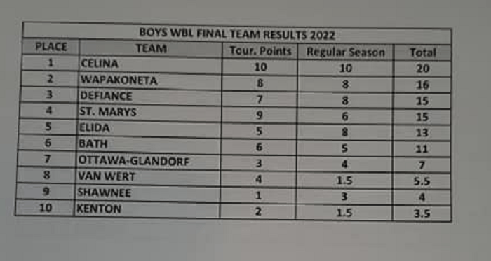 (2-12-22) The Celina Boys Bowling team won the WBL Conference Championship and Tournament today at 20th Century Lanes in Lima.