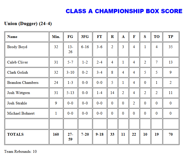 A Boyd three-pointer put Union (Dugger) with 61-58 in the fourth quarter, but that’s as closed as the Bulldogs would come down the stretch.