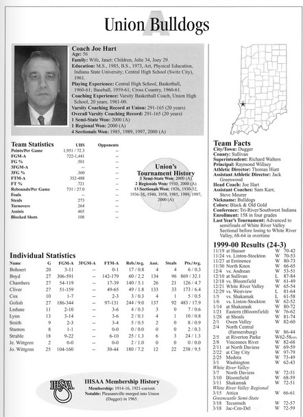 (2-13-22) 2000 will be a year that Dugger Union will always remember. The Bulldogs would go to the Indiana High School Athletic Association (IHSAA) Class A State Championship losing to Lafayette Central Catholic 82-70.