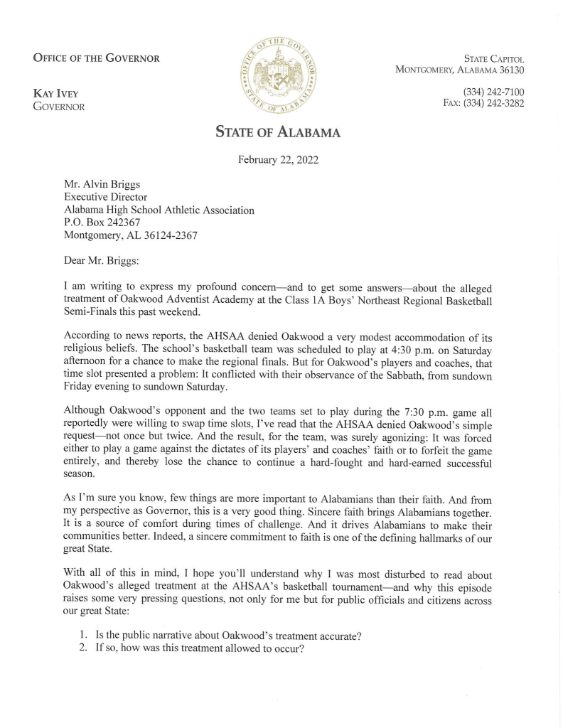 AHSAA executive director Alvin Briggs responded to the Governor’s letter –