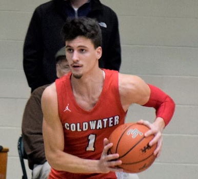(3-2-22) Last night Coldwater (Michigan) beat Otsego 54-46 on Senior Night. The Cardinals picked up the win, but a special part of the night was when Senior co-captain and four year starter Ethan Crabtree was able to start and score his last basket in his career.
