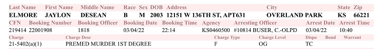 (3-7-22) Olathe East High School student and football player Jaylon Elmore (18) has been charged with attempted capital murder after allegedly shooting a school resource officer on Friday. Elmore was charged Saturday in Johnson County District Court. and his bond has been set at $1,000,000.