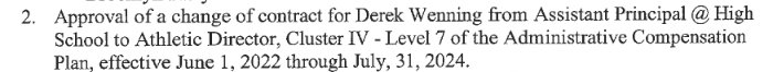 (3-14-22) At tonight’s Celina City Schools Board of Education meeting they hired current Celina Assistant Principal Derek Wenning as the new Athletic Director. He replaces Jeff Fortkamp who announced earlier this year that he was retiring.