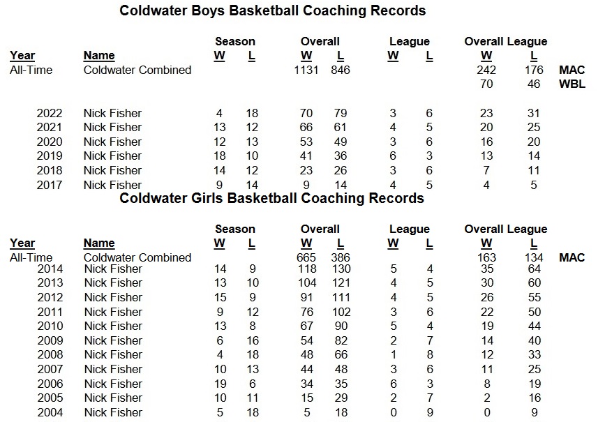 Nick Fisher has been the head coach for both the boys and girls basketball teams over the years.