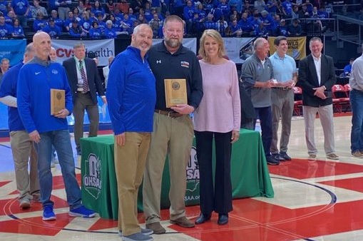 (3-21-22) Current Coldwater Boys Basketball Coach Nick Fisher was presented with the Bob Arnzen Award at the 2022 OHSAA State Basketball tournament this past weekend at UD Arena.