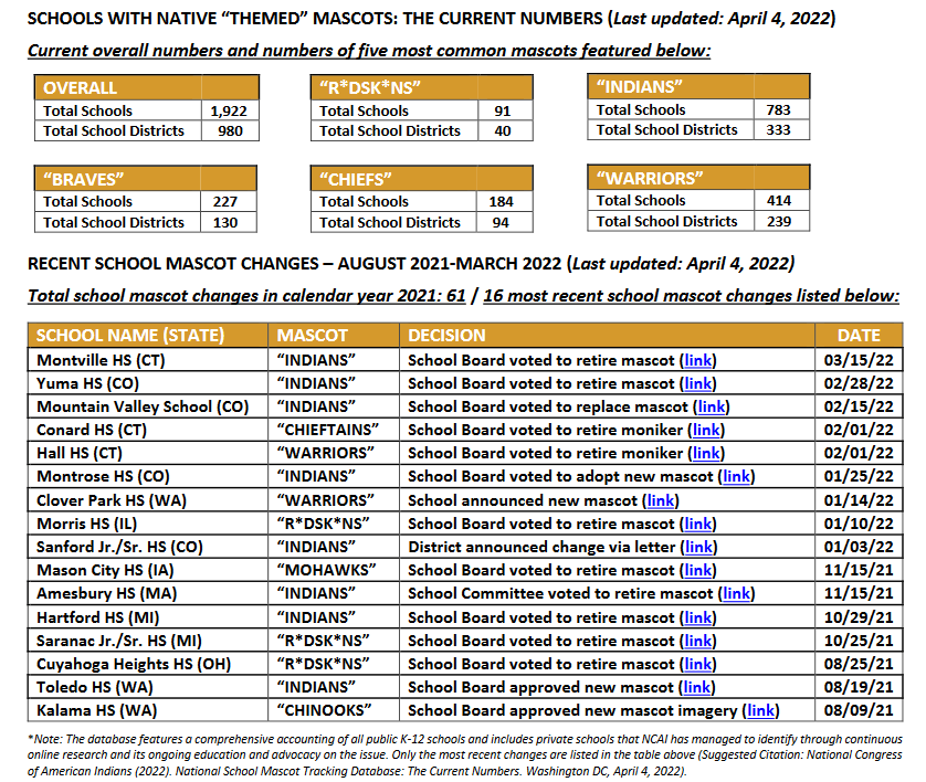 According to the National Congress of American Indians Ohio still has the most Native American mascots, the most of any state, according to the group’s national database.