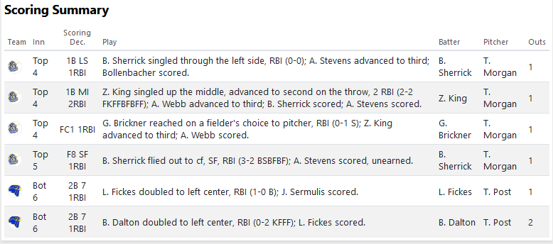 The Lancers scored all the runs they would need in the 4th inning crossing the plate 4 times, they would add an insurance run in the top of the 5th.