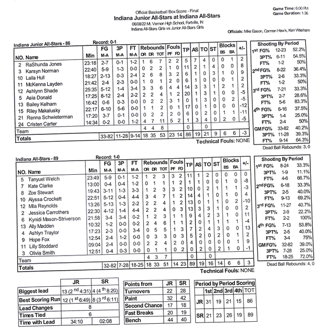(6-8-22) Tonight at Mt. Vernon High School the Indiana Senior All Stars held on to beat the Juniors All Stars 89-86.