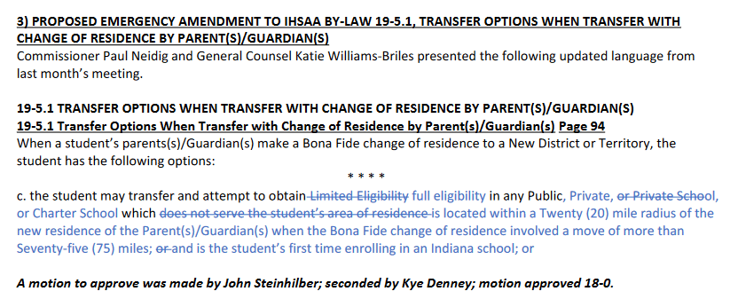 (7-6-22) Like any other state association the Indiana High School Athletic Association (IHSAA) is facing transfers at record numbers this past year. 816 more transfers were approved full eligibility as compared to the same time period from the previous year. 93.1% were approved, while 213 were given limited eligibility (6.%) and only 31 (0.09%) were ineligible to compete.