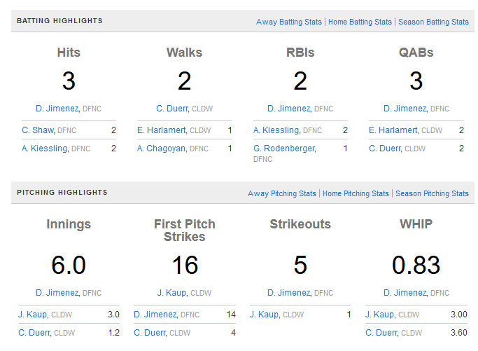 (7-19-22) Defiance’s David Jiminez pitched a 6th inning 3-hit complete game (2 RBIs on offense) in a 10-0 win over Coldwater at the 2022 ACME State Championship in St. Henry. For the Bulldogs it is their 12th State ACME title and 2nd consecutive title.