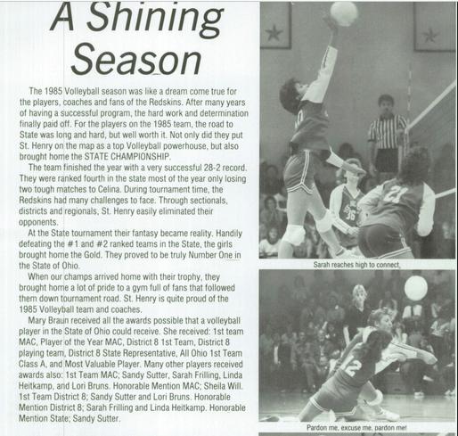 1985 St. Henry won its 1st OHSAA State Volleyball Title under Hall of Fame Coach DeDe Stoner.