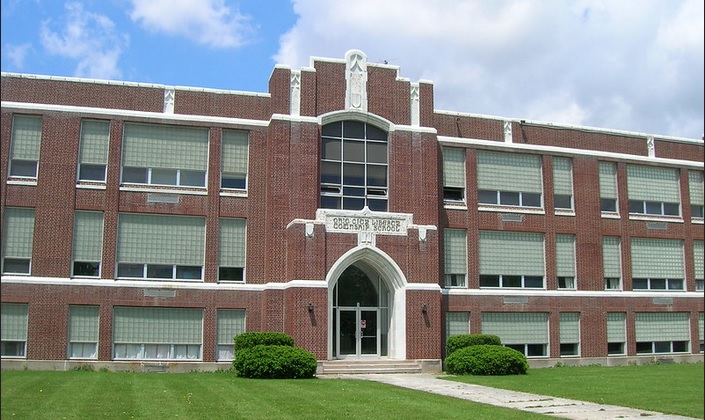 The school colors were red and green and the fight song was set to the tune ‘Anchors Away‘. Its gym was not a full-size one, but one that they could have filmed the movie ‘Hoosiers’ on.