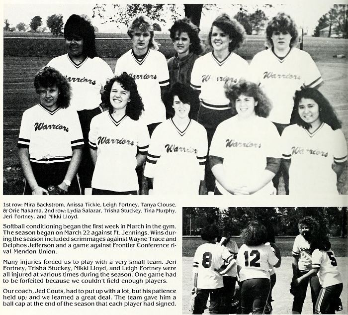In 1988 the Warriors competed in girls volleyball, cheerleading and softball, while the boys had basketball, baseball and golf.