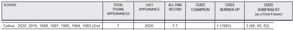 The last time Celina qualified for the playoffs based on computer points was in 2015 (every school qualified during pandemic in 2020).