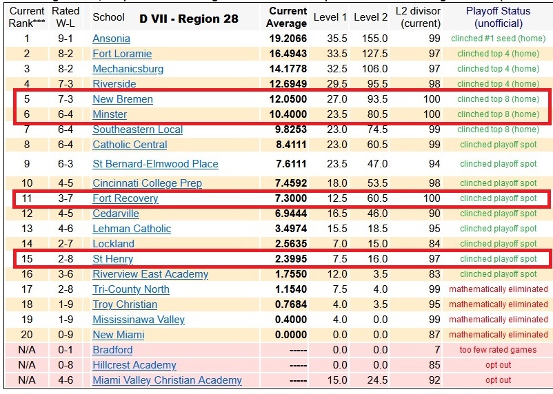 D VII Region 28 had 23 schools… two schools opted out of competing in the playoffs and Bradford didn’t have enough rated games. The other four remaining non-qualifiers…one was 2-8, two were 1-9 and one was 0-9.