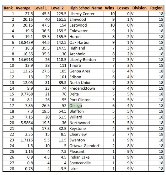 Just one school with a winning record, 6-4, did not qualify for the playoffs, Otsego in D V in Region 20.