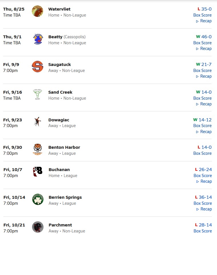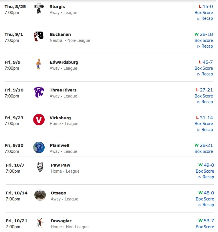 “We are playing well,” he said. “I am pleased with where we are at and that we didn’t fold in the middle of the season at 1-4. We could have pretty easily. We were playing okay up to that point with the exception of the Sturgis game. We even did some good things against Edwardsburg. But we kept shooting ourselves in the foot, turning the ball over and making silly mistakes. We have kind of all that stuff up. It is amazing how many points you can score when you keep ahold of the football.”