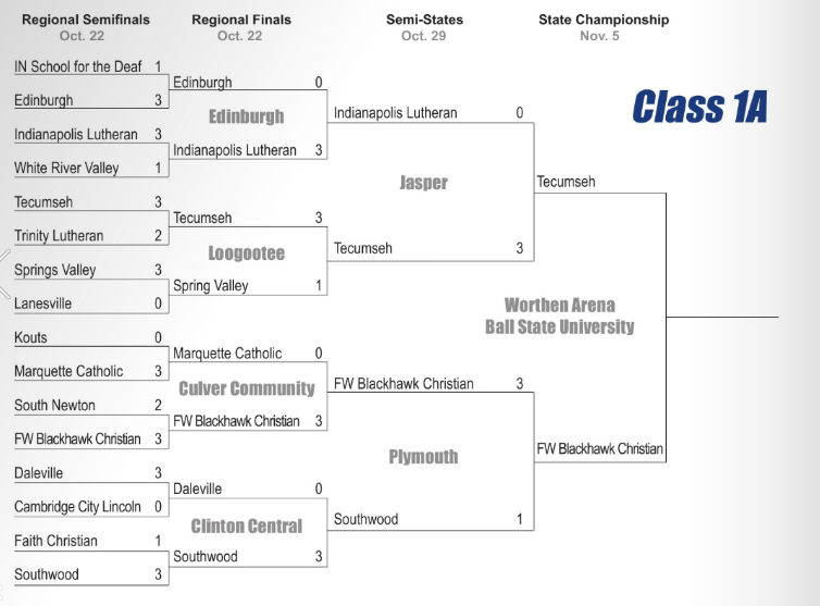 State finals day began with a marathon, five-setter and when it was over, Fort Wayne Blackhawk rallied from a 2-1 deficit to post a 3-2 victory over second-ranked Tecumseh (21-25, 25-13, 12-25, 25-20, 15-5).