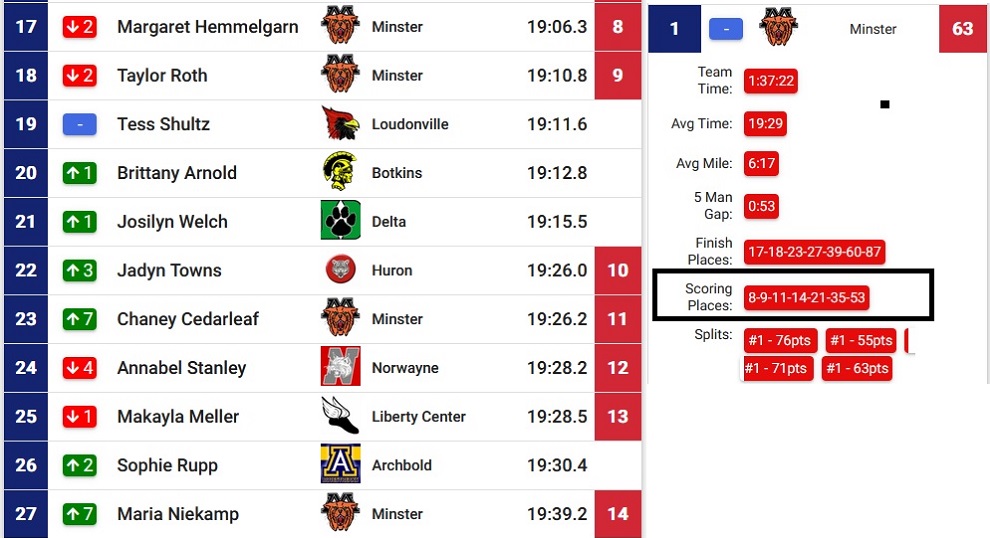 (11-5-22) Today at Fortress Obetz and Memorial Park Minster outdistanced next door neighbor Ft. Loramie to win another OHSAA D III Girls Cross Country title 63-119.