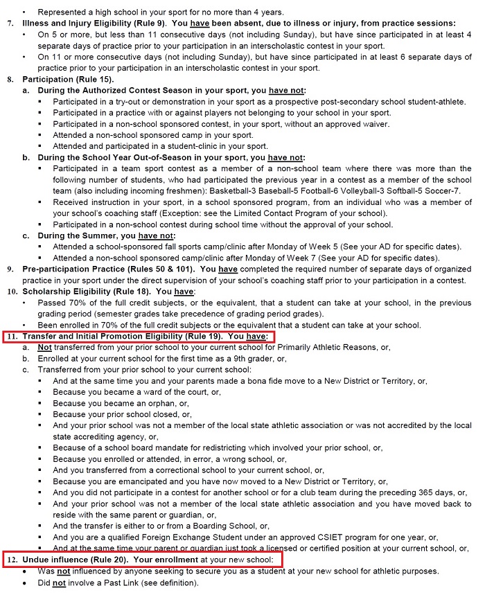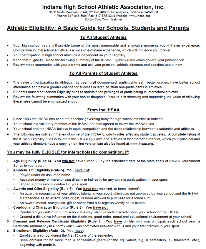 The above is just a guideline for those looking for answers. Complete IHSAA by-laws (page 92) on transfers.