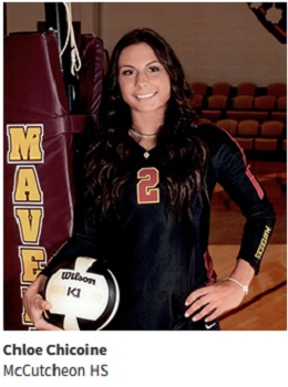(12-2-22) The Indiana High School Volleyball Coaches Association (IHSVCA) Executive Board initiated a new award this year – Indiana Ms. Volleyball. The first recipient is McCutcheon’s Chloe Chicoine.