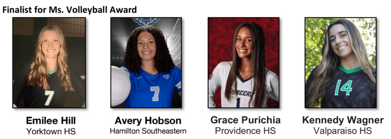 Coaches nominated players for this honor. The Selection Committee members narrowed the list to five finalists. A second committee selected from the five finalists our IHSVCA Indiana Ms. Volleyball award winner.